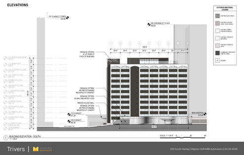 Led by Midas Hospitality, and design work led by Trivers, the building will become a 150 roon hotel. A brand is not yet connected to the project. For the record, the most recent hotels to open in Downtown Clayton include an AC Hotel, Residence Inn and Le Meridien.