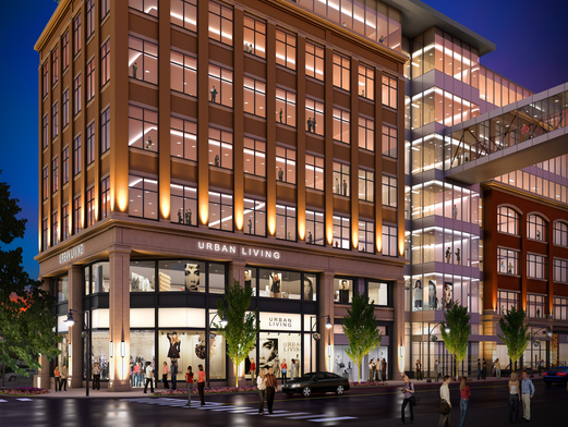 Retail space in the residential portion will be two floors in parts (as seen in the rendering below). The rendering below also shows the changes presented in the paragraph above and they are welcome in my opinion.